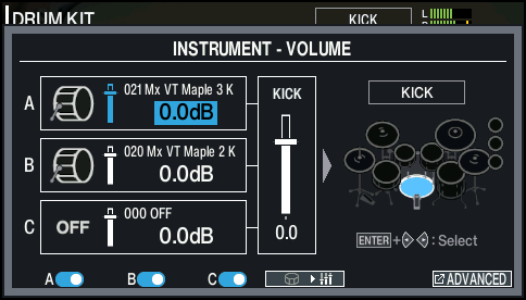 - Press the [F4] button to display the INSTRUMENT - VOLUME window.