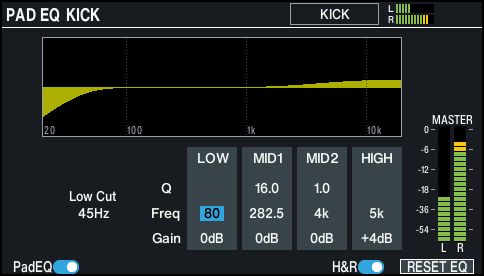 - The PAD EQ screen appears.