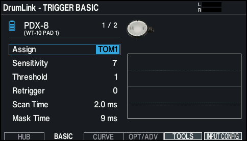 - Press the [F2] (BASIC) button to display the DrumLink - TRIGGER BASIC screen.