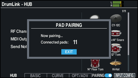 - Once the pads or cymbals are paired, a message like the following appears.