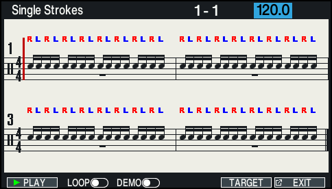 - Press the [F5] (TARGET) button to select the pad to practice on.