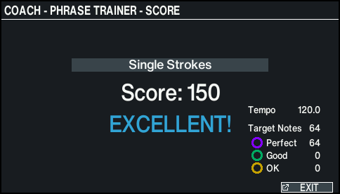 - After the phrase finishes, the result of how accurately you played the phrase is shown.