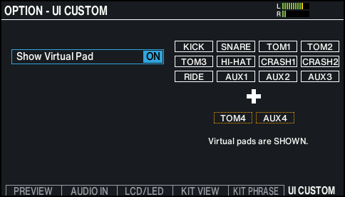 - *1: When the Trigger Input AUX1/TOM4 Select setting is “AUX1”, TOM4 is used as a virtual pad, and when the Trigger Input AUX1/TOM4 Select setting is “TOM4”, AUX1 is used as a virtual pad.
