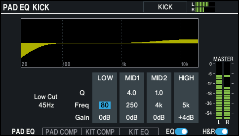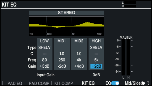 Configures the equalizer for the entire drum kit, on a kit-by-kit basis.