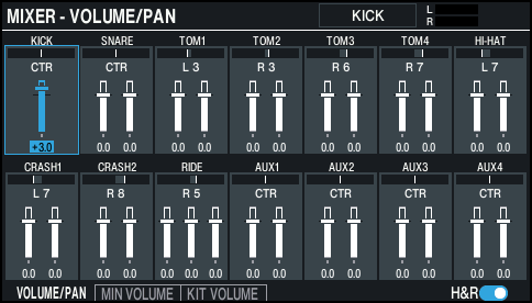 Here’s how to set the volume, pan and other effects for each pad or drum kit.