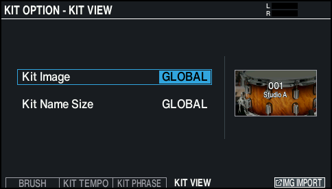 Sets the brush, drum kit tempo, KIT screen view and so on.