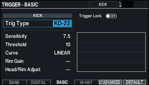 You can edit these settings if you want to make finer adjustments, or if you want to use an acoustic drum trigger.