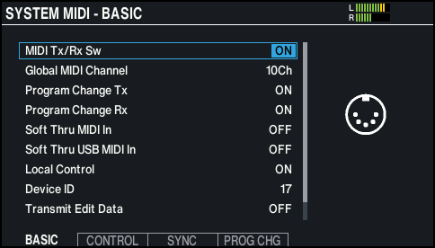 - Use the cursor buttons to select “SYSTEM MIDI”, and press the [ENTER] button.