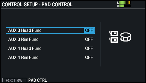 - Aparece la pantalla CONTROL SETUP - PAD CONTROL.