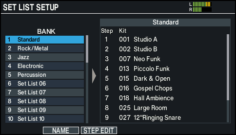 - SET LIST SETUP画面が表示されます。