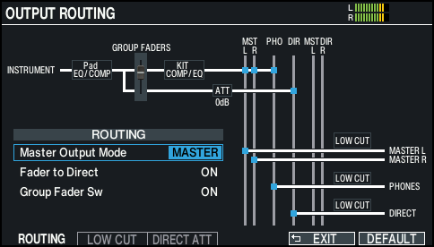 ROUTINGタブのMaster Out Modeが「DIRECT」のときは、MASTER OUT端子にも有効です。