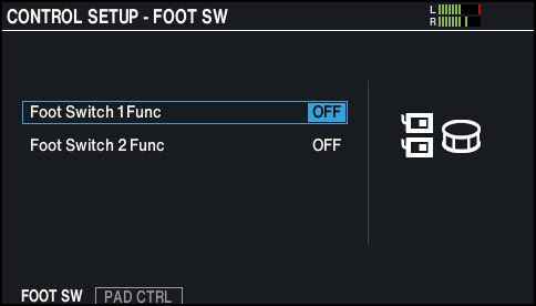 - CONTROL SETUP - FOOT SW画面が表示されます。