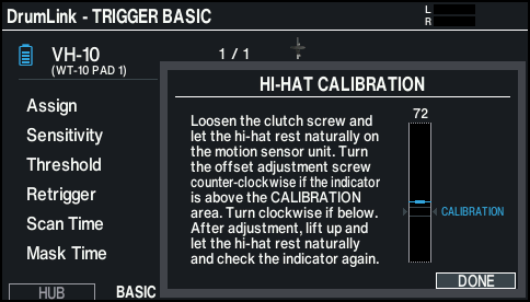 - キャリブレーションは、ハイハットのオープン、クローズの動きを正しく検出するために必要な設定です。