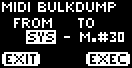 - Aparece la pantalla MIDI BULKDUMP.