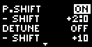 效果编辑模式此模式用于编辑音高变化,失谐等。按下 [EFFECT] 按键显示效果模式屏幕。按下 [EFFECT] 按键可在效果模式与效果编辑模式之间切换。选择参数。转动 Select 旋钮:选择参数。按下 Select 旋钮:用于编辑值。更改设置值。转动 Select 旋钮:更改设置值。按下 Select 旋钮:返回参数选择。重复步骤 2-3。Additional information效果参数